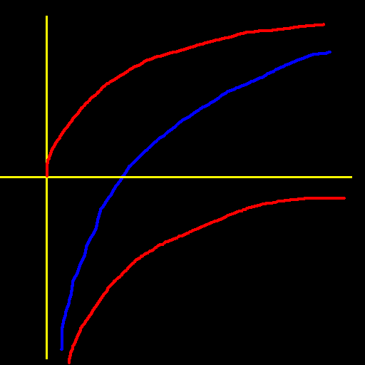 ==================== 対数サンドイッチ220円ver0.01 Logiristic Sandwitch Ver0.01 CopyRigit Miyama. 2011 Oct-Nov kaz_kimijma@yahoo.co.jp www.geocities.jp/kaz_kimijima ==================== はじめに これは指数と対数にかかわる小論文として の数学啓蒙のドキュメントです 筆者の高校時代と2005頃の試行をもと に作成されています フリードキュメントです 閲覧配布は自由です 閲覧にはHTML規格3.0以上のWEBブラウ ザが必要です WINMACどちらも閲覧可能です 免責 作者はこのドキュメントの閲覧によるあら ゆる不利益・不合格に責任をもちません あらかじめご了承ください ファイル アーカイブを解凍したときにあらわれるフ ォルダにはドキュメントが参照する画像が入 っています フォルダは削除しないでください ーーーーーーーーーーーーーーーーーーーー 筆者の学生時代、学食の購買のサンドイッ チでは缶みかんと生クリームの三角サンドが だいたいこのくらいの値段でした うすーいハムフライのはさまったやつはお おむね180円ぐらいでしたね 25年前の話です ライトノベルの作家氏がそのテーマにかか わらず学園ものの舞台を書きたがるのは、お そらく当時のあこがれにみちみちていた世界 をすばらしい記憶として忘れ去ることができ ないからなんでしょう BGMがペギー葉山さんか松任谷さんかは、 世代によって曲は違うことでしょうが。 筆者は受験勉強ではじめたいろんな分野の 不思議に魅了され、働くようになっても不定 期的に、追いかけてしまったところがありま した 自分はおぼえることは人一倍遅いくせに、 その代わり一度おぼえると、忘れることがで きない体質なようで、そのため受験は事実上 うまくいかなかったですが、それでもその後 でも好奇心をとどめることはできませんでし た。馬鹿なんですね 「カッシーニ」のくだりでも書きましたが、 おそらく過ぎ去った時代の受験地獄はおそら く時代の不幸だったのでしょう ・・・私は、要領のよい記憶法ようなもの で受験を突破し、その後あそびまくることが できる大学生がいることが信じられませんで した 遊ぶことはともかく、知ったことの好奇心 が身を焦がすことのないそのメンタリティに 対して、です 要領のよさとは学問や仕事に対する冒涜の 気配がします といえば聞こえはいいですが、自分は好き とおもったことしか身につけることが出来な い不器用な人間なのです 以下の項目は、数学で行った自由研究とし ての練習問題をならべるものです 学生さんでも、こんなほうからのアプロー チもあるんだ程度の献上としてオンラインに ほうりこむものです 個人的な発見めいたものを含みますが、そ れも専門氏にとってはもちろん常識なことで しょう それよりは、高校時代どうしても理解でき なかったことの大人になってからの再評価の 色彩がつよいように想えます なお、題名の「サンドイッチ」は個人的に は数学には幾何的感覚が大事だということと、 それからこの項目の個人的な小発見が、ふた つの関数のグラフのサンドイッチにより導き 出されたからでもありました たまに200年ぐらい前に発見された公理 を自分で再発見してしまうことがありますが、 おそらくそれは高校程度のよい練習問題に、 潜在的に公理へのヒントが隠されていただけ にすぎません またこれは逆に、知り過ぎない態度だけが あじわうことのできるささやかな幸福なので しょう その意味ではこの小論文は真に受験数学と は関係がありません また、やや専門的になりますが、指数と対 数は概念的に右手と左手のようなもので、両 方が鏡のようにあわさるとそれはある数学的 な関係を示すこととになります この小論文のひとつの軸です しわとしわをあわせるのはしあわせであっ て、けっしてしわよせではありません(笑い を取ってどうする) ーーーーーーーーーーーーーーーーーーーー 累乗根のグラフ和から対数関数を近似でき ることの発見 ーーーーーーーーーーーーーーーーーーーー これはたぶん今から6年ぐらいまえになり ますからおそらく2005年ぐらいだとおも います 紙と鉛筆で模造紙上に任意の関数の形をフ リーハンドで描いていたところ、 平方根の関数 _ y=/x と その負の逆数形式の関数 1 y= --- _ -/x のあいだにちょうど対数y=log x (もちろんともにxは正の値) がはまり込むようにみえました つまりこのふたつの式の和が対数を近似す るのかもしれないとみえたのです